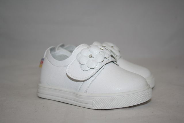 Пинетки детские компания Капитошка. Снаружи - искусственная кожа. Внутри - натуральная кожа. Цвет - белый с цветами. Страна-производитель - Китай.