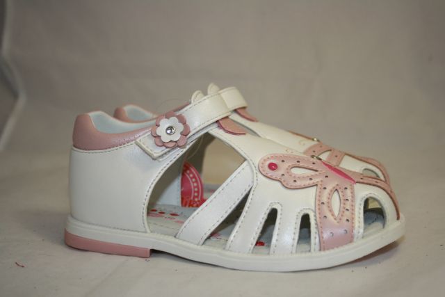 Босоножки детские компания Tom.m. Снаружи - искусственная кожа, снутри - натуральная кожа. Цвет - белый/розовый. Страна-производитель - Китай.